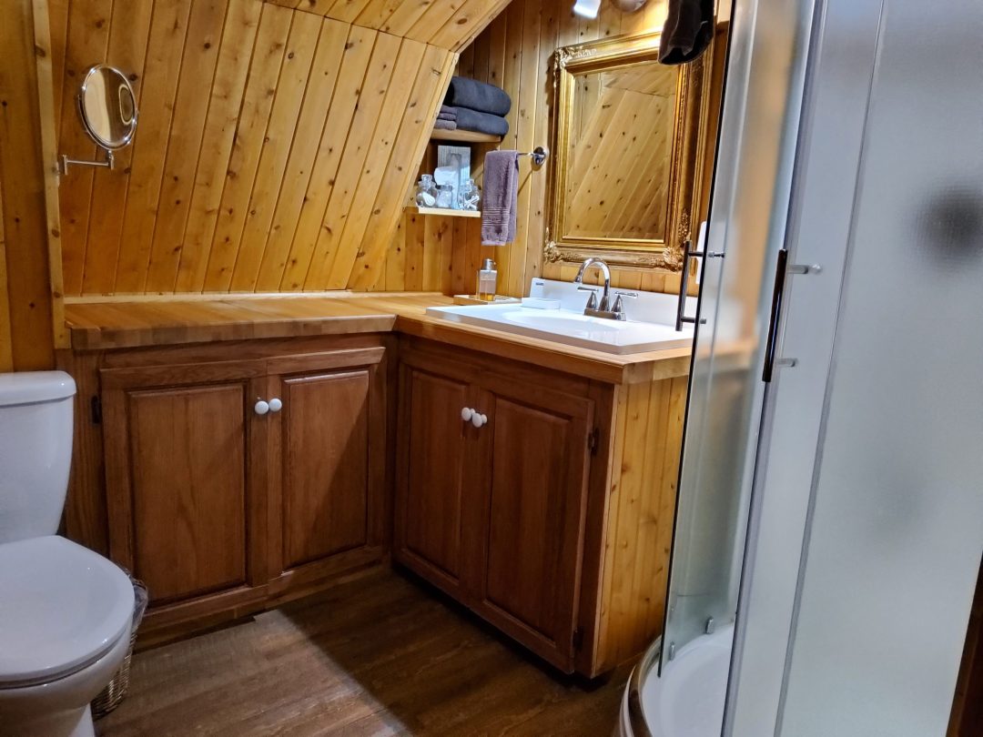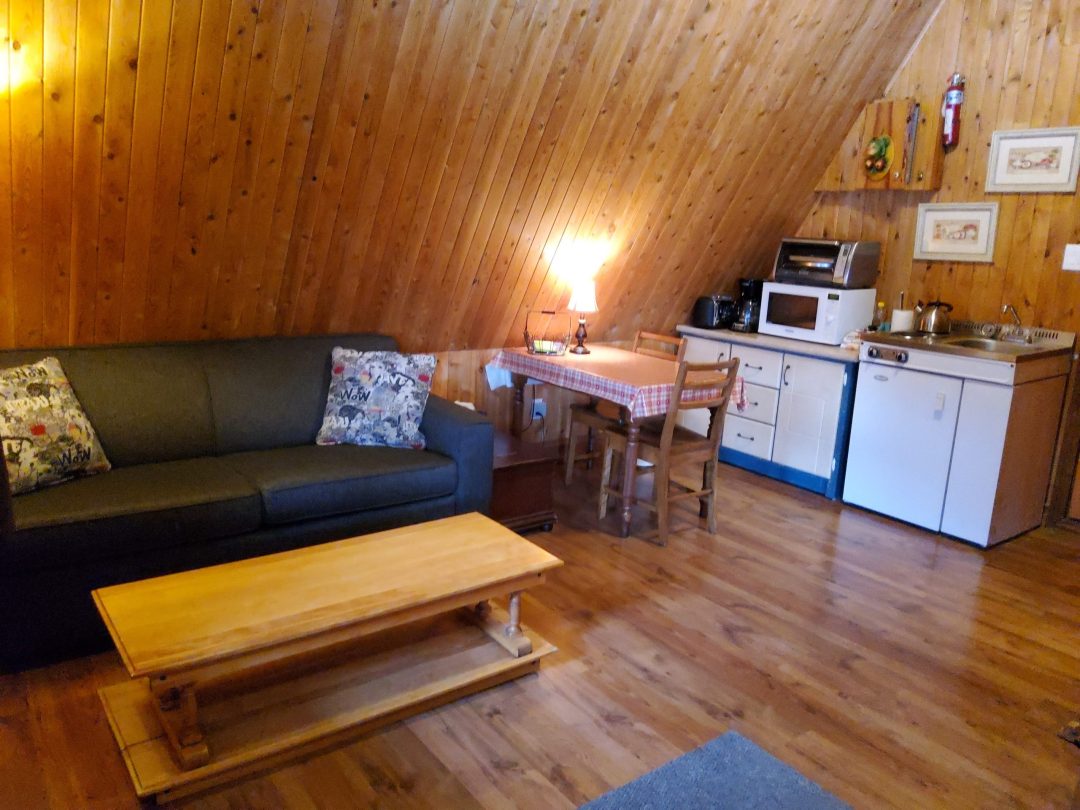 Quant au petit loft, il dispose d’une cuisinette pratique équipée avec petit réfrigérateur, plaque de cuisson, cafetière, grille-pain, micro-ondes, vaisselle et accessoires. Bien que plus compacte, elle offre tout l’essentiel pour vos repas légers et vos petits-déjeuners.